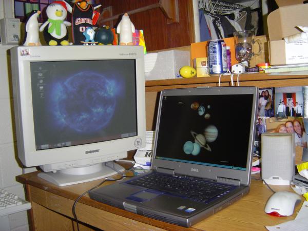 I've also really been enjoying my laptop. As I said in the last updated, I reformated everything and created some Linux partitions, so I basically started out from scratch. I have Windows working great on it, but I'm still fighting with Linux to get X (the graphical part) to work. So I can get to the console just fine and even connect to the internet, but because I have such a new videocard and something's just not working right with the config file, I can't get graphics to come up. I'm sure I'll get it working eventually, but in the meantime I've been busy using the wireless in Windows. Now if only we could get wireless in the dorms. I've also got pictures of it now up:
