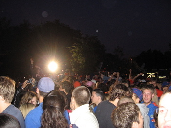 The crowd of people to get in (notice the crowd surfer)
