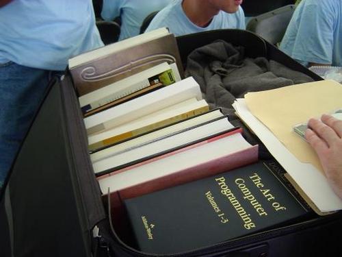 Suitcase full of books (since you can't have any electronic/internet access, but all the