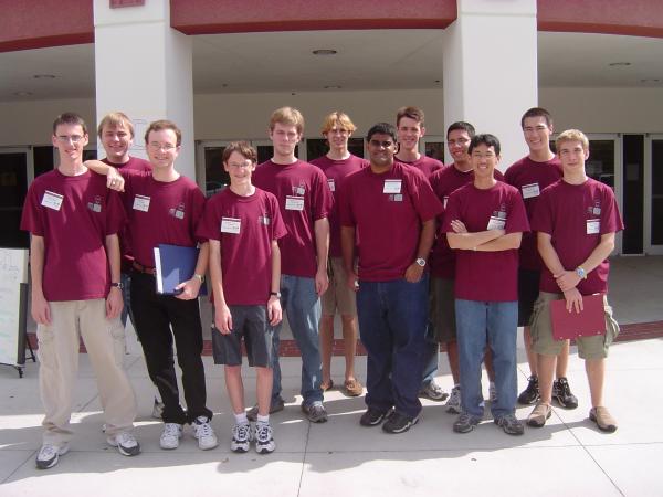 Saturday was the Southeast Regional ICPC. Which means my team of 3 tried to program 10 different problems in the span of five hours. We didn't do so well (only got 2 to get 37th out of 75) but it was still a lot of fun. It's never a bad time when you get over 200 of the nerdiest computer people in the Southeast all in one room. Here's the makeup of the 2004 UF team.