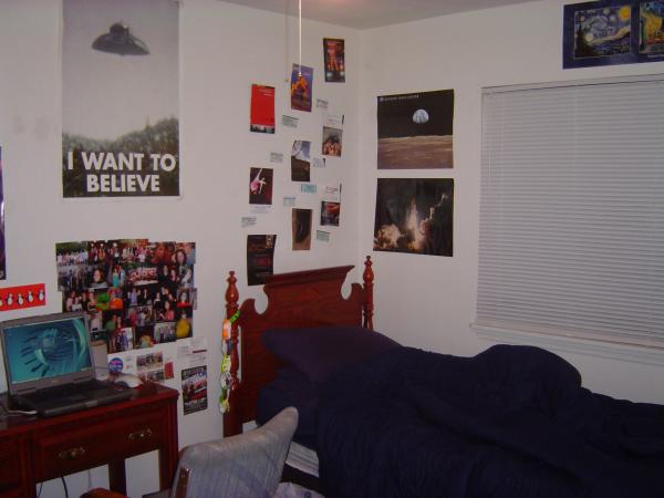 I finally have my room decorated like I wanted it, and also finally have blinds up in my window. It only took two and a half months to get me a set of blinds for my bedroom window. So I finally got to take down a big blue sheet I had up instead. So thanks to the wonderful invention known as a digital camera...
