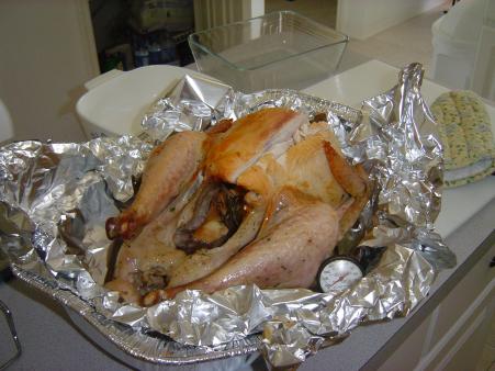 Steps for a really really good turkey: Put a coat of butter mixed with garlic, parsley, sage, thyme, salt, and pepper all over the outside of the skin. Then stuff it with half an apple, a slice of orange, and rosemary herbs. Bake a little under 4 hours, and enjoy!