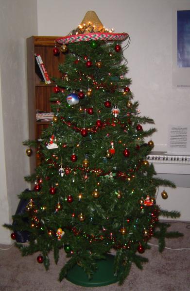 In between writing the proof to the Extremum Theorem a dozen times over the weekend to study for my math test today, I managed to get the tree decorated. It's a Mexican Christmas tree, which I have to give credit to Alyson for thinking of that great idea. Here's a shot of just the lights as well.