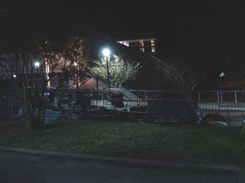 Our spot in line, I was sitting in that chair to the left of the tent