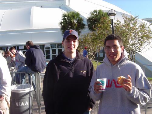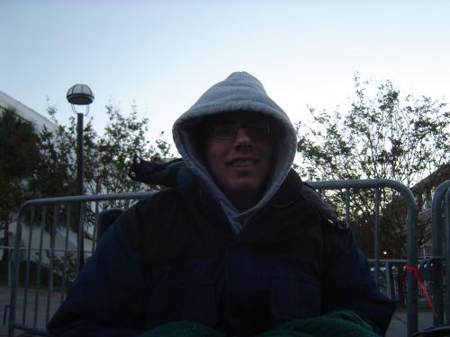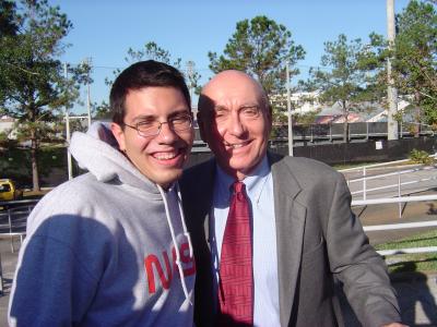I spent 12 hours in line and went without sleep for almost 30 hours in order to get some of the best seats in the house for the Louisville game today. Me and my friends got in line about midnight, and I brought my laptop to watch some Family Guy and Ghostbusters while we waited. It was pretty cold, got down to 45 I think, but I had on a thick sweatshirt, a huge winter jacket, and a blanket, so I managed to stay pretty warm. Most of the about 250 people out there with us slept, but I just can't seem to fall asleep while in line, so I stayed up the entire night. We got some free hot chocolate, water, and McDonalds in the morning from the athletic department, and when we got in they handed out free tshirts. I also got to have my picture taken with Dick Vitale, who is my favorite (and one of the most famous) college basketball announcers for ESPN.