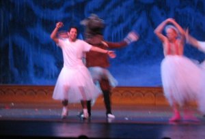 I made my stage world premire debut Thursday, in a performance of the parody of the Nutcracker. I played the brother and a snowflake. Yes, a snowflake. Thereby ruining any chances at public office I might have had. All well. Candice was very supportive, even when seeing me in a tutu. It was really fun and it was cool to see the backstage and dressing rooms of the Phillips Center, where I go to see tons of plays and ballets anyways. I got into it via a friend of mine who said I could get a part in the background as an extra in the party scene, and it just expanded from there (being I was the youngest male and had no qualms about making a fool of myself :)). So yes, pictures: