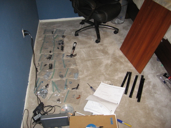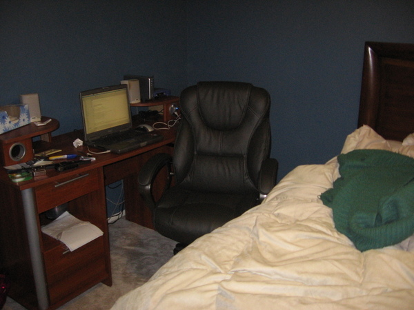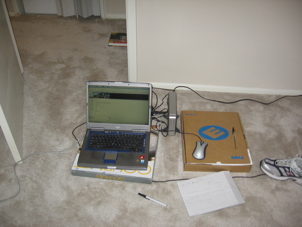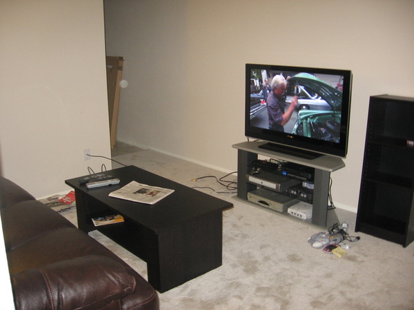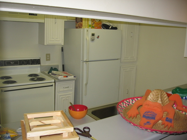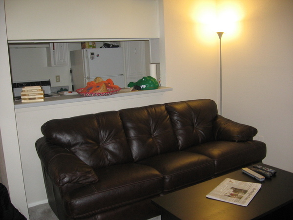 So after a little over 2 weeks in Austin, I finally have most everything done in regards to furnishing my place. Still missing a table and a DVD rack (cause where else would I put all those DDR games?) but I have a bookshelf and a coffee table (or as the proper adults say, "cocktail table" (say that to yourself in a snobbish voice. Just do it.) (embedded parentheses, this can't be legal English. Can it?)) so I figure that'll do for now since it's just me. And there's some kitchen stuff I still want to get that's a bit nicer than my college Wal-mart cookware, but I figure that can wait a bit too. It's really nice to have a "home" now, that's all mine. And every day I find another reason why I love my location.