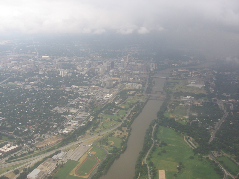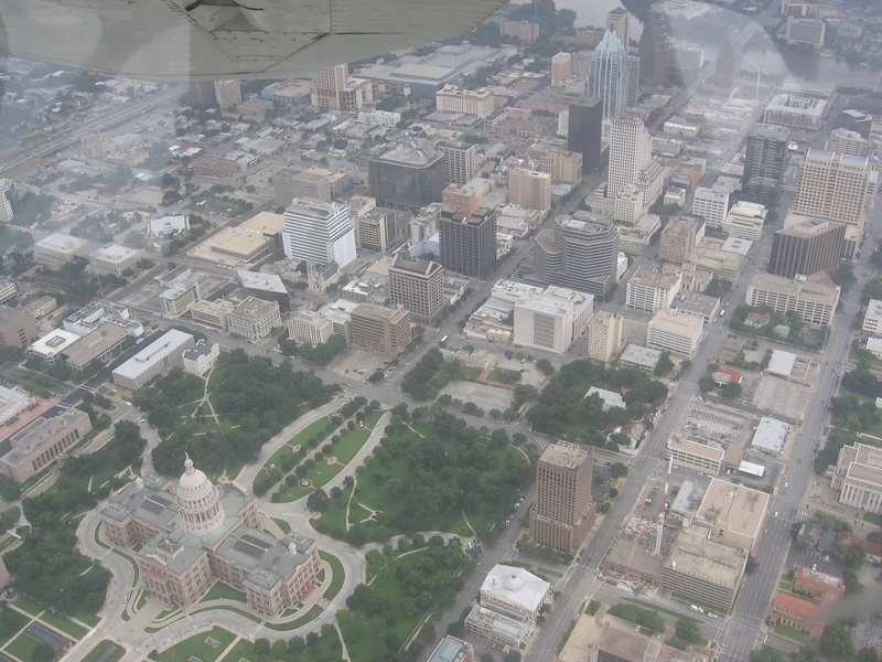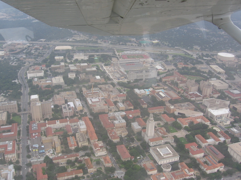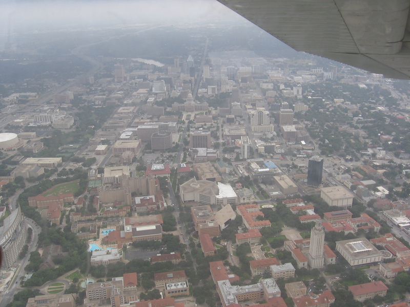 Then this weekend I got the chance to take a private plane over Austin, thanks to a friend of a friend (I've had really good luck with friends of friends in general the last few weeks, my friends pick good people to be friends with, what can I say?) who has a pilots license and had an extra seat in his 4 seater plane. He took us over downtown Austin and UT's campus, and then my apartment and Freescale's and National Instrument's campuses. It was definitely the smallest plane I've ever been in, but really really cool to see all this stuff from 2000 feet up.