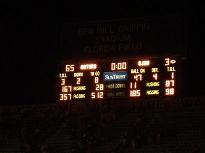 Anywho, I took a few pictures of the football game, so if you've never had the chance to see a game in the Swamp, here's what