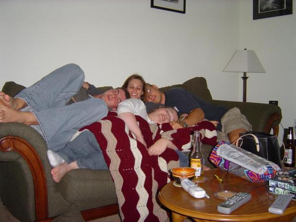 For the first time I actually looked forward to all of my classes, since I got to pick them all out since all I have left is electives pretty much. I'm taking two graduate courses in computer architecture, a class in advanced calculus for my math minor, a really cool class on Social and Legal Issues in Computing where we debate online privacy, pirating, online decency laws, ethics, and all sorts of interesting topics related to computers and technology. Sorta like the stuff I write on here about sometimes (ie the DMCA/DeCSS and mp3 downloading). And finally social dance, which is the first non-science/math related course I've ever taken in college. I like dance a lot, and we get to learn a lot of cool ballroom dances (currently doing foxtrot) so that I signed up for it even if it is ridiculously early in the morning at 8:30. Not to mention it has more girls in that one class than in my last 3 semesters combined.