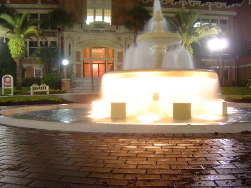 cool night picture of the fountain on campus (after um, er, getting a bit wet in it)