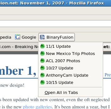 I think it's best described by looking at the pictures below. This is what you would see in Firefox when you subscribe to my RSS feed. The "BinaryFusion" part stays the same, but the links below it will update whenever I make a new post or add pictures.