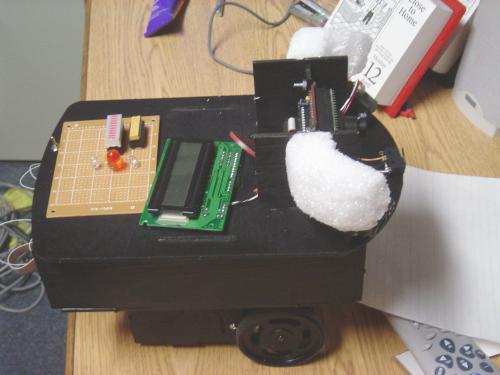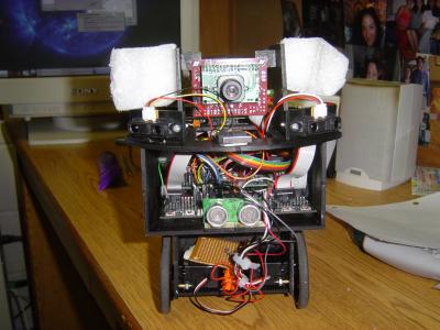 Sbob (Senor Bob) is an autonomous intelligent robot that acts like a bull. It wanders around the room avoiding obstacles until it detects a red object in front of it. It will then charge toward it calculating how close it can get before it is moved out of the way. It alters it's behavior based on the number of misses, and can also track red colors objects in an effort to chase after them.