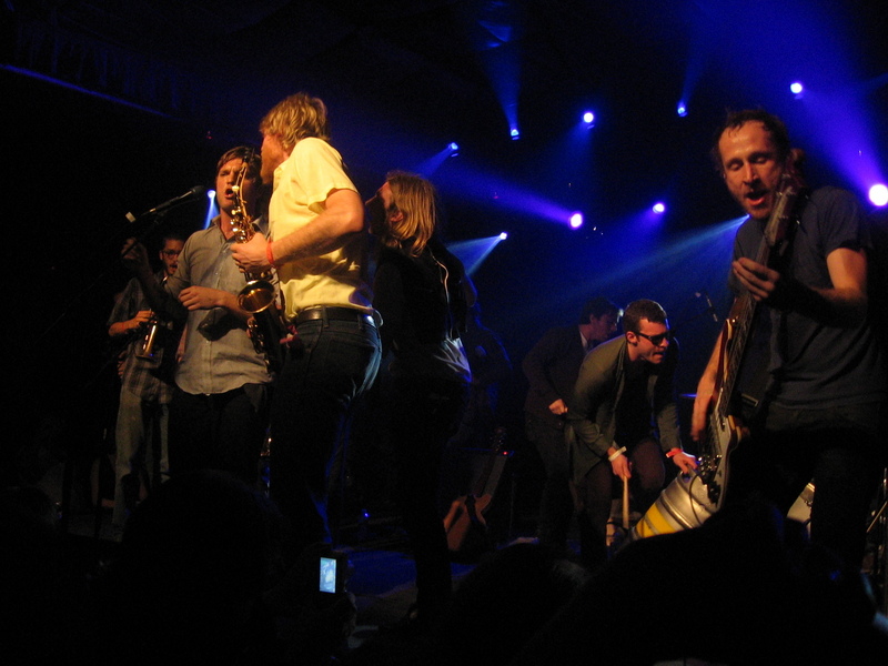 At the end of the set they invited the Elvis Perkins band and other people to do a jam session, ending up with over 15 people on stage banging on everything from wine bottles to a beer keg.