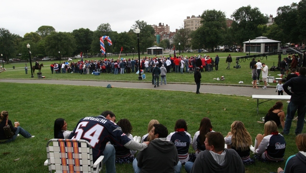 And then later had a bunch of Patriot fans dressed up with props and everything. The Patriot cheerleaders are in the fore-ground.