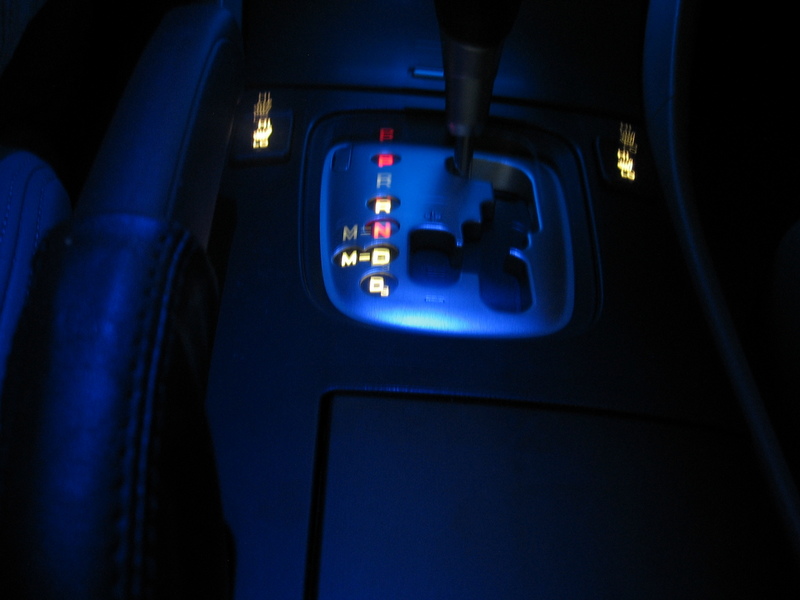 Long exposure picture of the gear shifter blue light