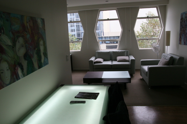 Swanky, yet cheap, apartment we stayed in for a few days. Check out the light up table