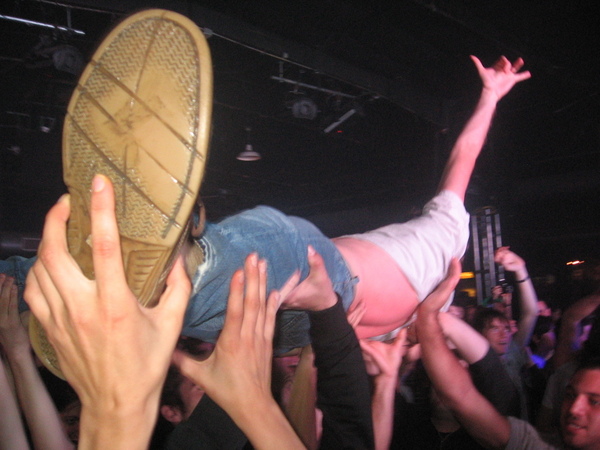 Almost getting kicked in the head by a crowd surfer