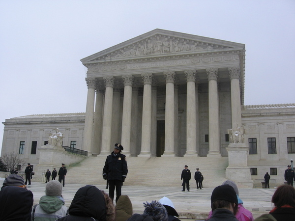 The cops stand watch to make sure no one rushes the Supreme Court